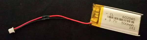 You will need a 3.7V 500mAh li-po battery. You can find these online on eBay etc. or in your local electronic components store. Look for one that is 20*40mm in size.