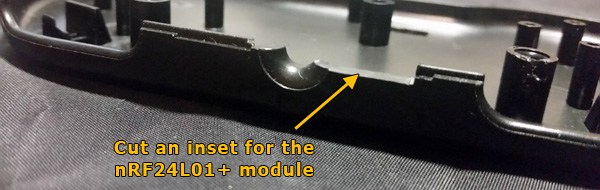 Cut an inset for the RF24 radio module (bottom shell).