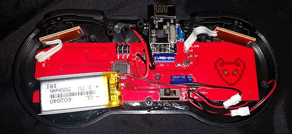 *) Two corners of the TP4056 module have been cut so it will fit in the gamepad case: